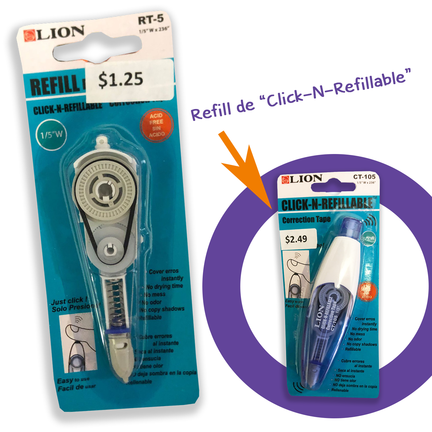 Lion • Refill del correction tape retractable "click-n-refillable"