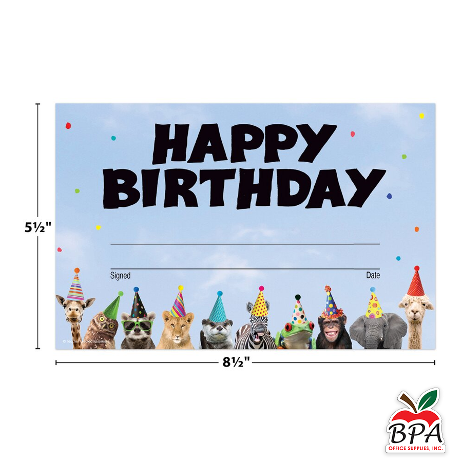 Teacher Created Resources • Certificados "Go Wild Animals - Happy Birthday Awards"
