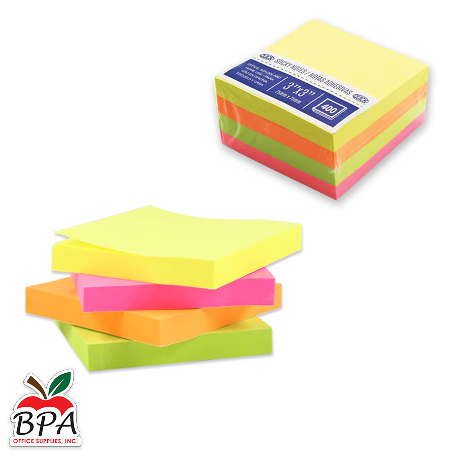 Quick • Sticky Notes 3" x 3" (color neon - 400 hojas)