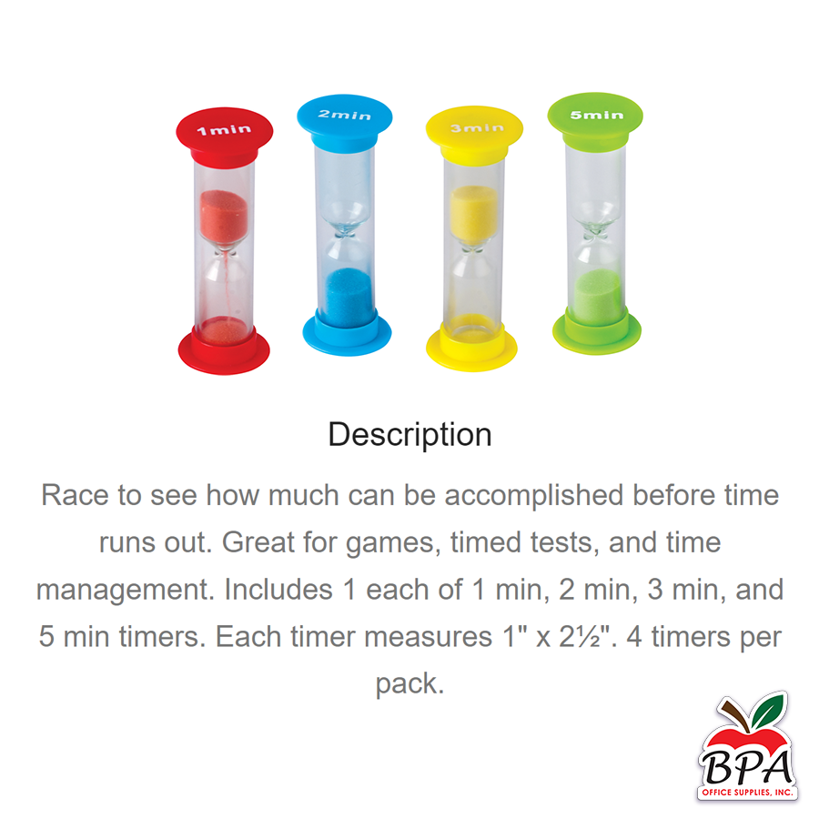 Teacher Created Resources • Mini Sand Timers Combo 4-Pack