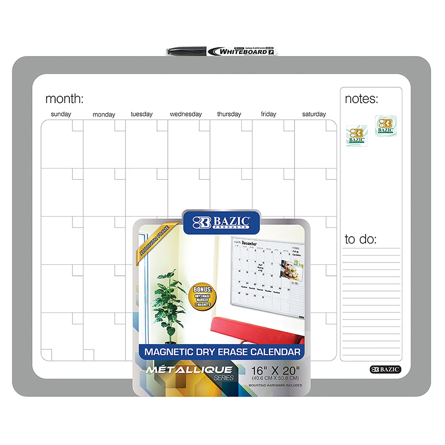 Bazic • Pizarra/calendario blanca magnética (16" x 20")