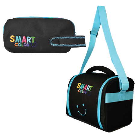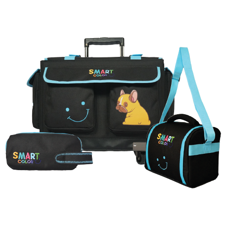 Smart Color • Set bulto cuadrado de ruedas, cartuchera y lonchera (azul)