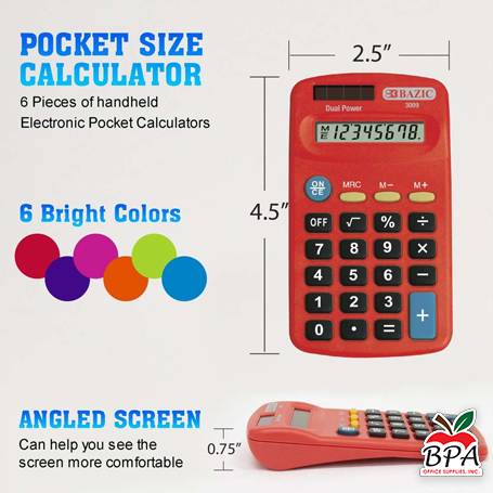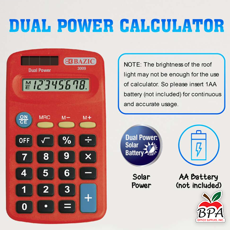 Bazic • Calculadora 8-Digit Dual Power (Pocket Size)