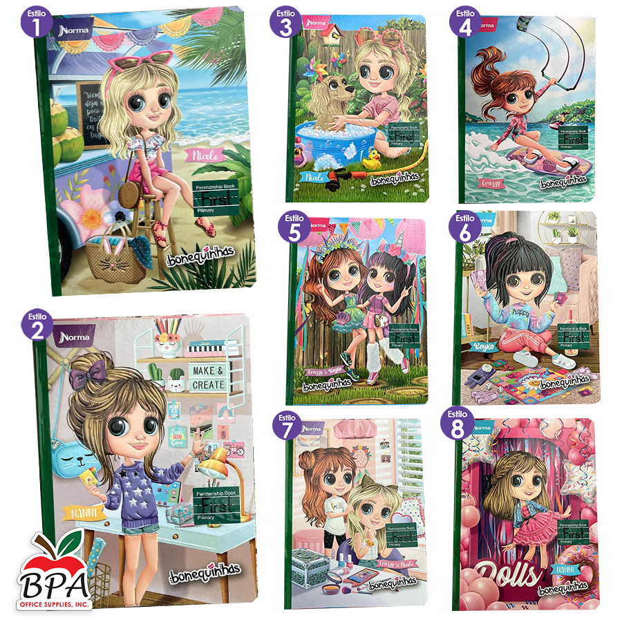 Norma • Libreta caligrafía 1st (first) grande carpeta semi dura "Bonequinhas Dolls"