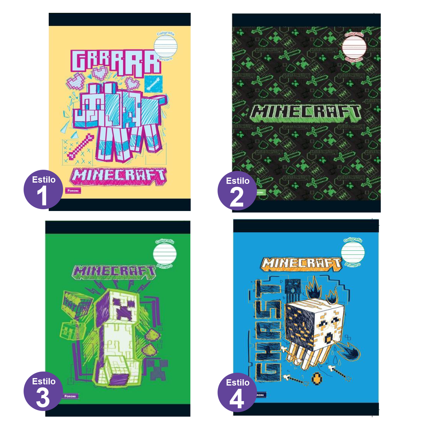 Foroni • Libreta caligrafía 3rd (third) grande carpeta blanda "Minecraft"